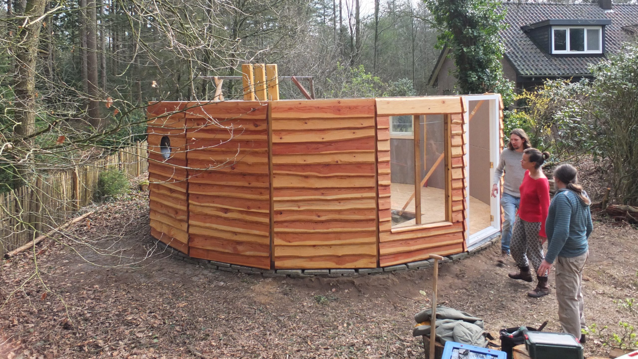 Begin maart hebben we mijn zelf ontworpen houten yurt geplaatst op het stukje land van Ronald in Putten. Dat was de bekroning van een project waar ik afgelopen twee jaar veel tijd en energie in heb gestoken.